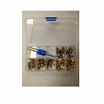 Набор золотников. Набор ниппелей для сервисных портов автомобильных кондиционеров на фреоне R134a. В комплект входит сервисный ключ, набор самых распространенных ниппелей. Поставляется в пластиковом футляре.