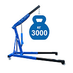 Для профессионального применения. Грузоподъемность 3т. Не складной. Высота подъема 330-2450 мм. Предназначен для подъема и транспортировки автомобильных узлов, агрегатов и любых других грузов как внутри помещения так и на улице. Вынос стрелы регулируется в соответствии с максимальной грузоподъемностью крана – 1000-3000кг. Рабочим приводом крана является гидроцилиндр.