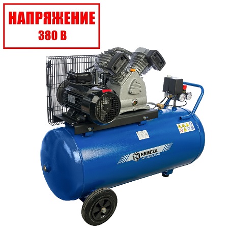 Воздушный поршневой компрессор REMEZA с ресивером 100 л, масляный, двухцилиндровый, мощностью 2,2кВт, Напряжение 220В. Производительностью 400 л/мин с коаксиальным приводом применяется в строительных, автосервисных и медицинских работах.
