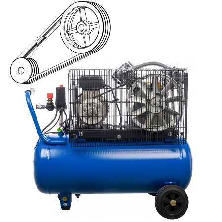 Компрессор воздушный, передвижной, поршневой, масляный, двухцилиндровый. Давление 10 Атм. Производительность 400 л/мин. Мощность 2.2 кВт. Напряжение 220В. Ёмкость ресивера 50 л. Ременной привод.