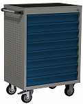 7 ящиков. Для хранения инструмента в ЕВРОЛОЖЕМЕНТАХ. Боковые панели с перфорацией (для установки аксессуаров). Цельносварная конструкция корпуса тележки. Центральный замок Euro-Lock. Шариковые направляющие полного выдвижения. Размеры (высота x ширина x глубина): 850 х 700 х 460 мм. Вес: 62,6 кг.
