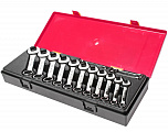 Набор ключей рожково-накидных в прочном презентабельном боксе (14 предметов). В комплекте: ключ рожково-накидной с трещоткой: 8, 10, 11, 12, 13, 14, 15, 16, 17, 18, 19 мм. - 11 шт и адаптеры 1/4", 3/8", 1/2" - 3 шт.