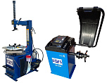 Комплект из полуавтоматического шиномонтажного стенда TS-21, для колёс 99% автопарка России. Для дисков: 11÷20”. В комплекте: пистолет для подкачки шин + монтажка + пластиковые накладки на зажимные кулачки + регулятор давления с влагоотделителем и манометром. + TS-550 Балансировочный станок (с лазером) Для дисков: 10÷24” (254-609 мм). В комплекте: кожух с автозапуском + клещи + кронциркуль + быстрозажимная гайка + набор конусов.
