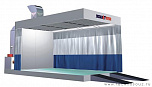 Данная зона подготовки имеет боковой забор воздуха и обладает функцией притока, вытяжки и рециркуляции воздушных масс. Также имеется функция поддержания заданной температуры окраски – до 25 град. Размеры зоны: 6300х3450х2700 (ДхШхВ) Потребляемая мощность: 12,2кВт.