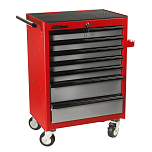 В комплекте: Наборы инструмента 496 предметов + тележка инструментальная 8 ящиков. Ящики оснащены фиксирующими защелками, которые предотвращают случайное открывание. Усиленные колеса из термопластичного каучука. Все ящики оснащены роликовыми направляющими, полностью выдвигаются и легко вынимаются из тележки. Размеры собранной тележки: 861х498х1000 мм.