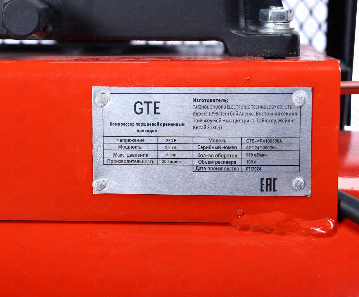 GTE-MR4100300A Компрессор поршневой с ременным приводом 380В