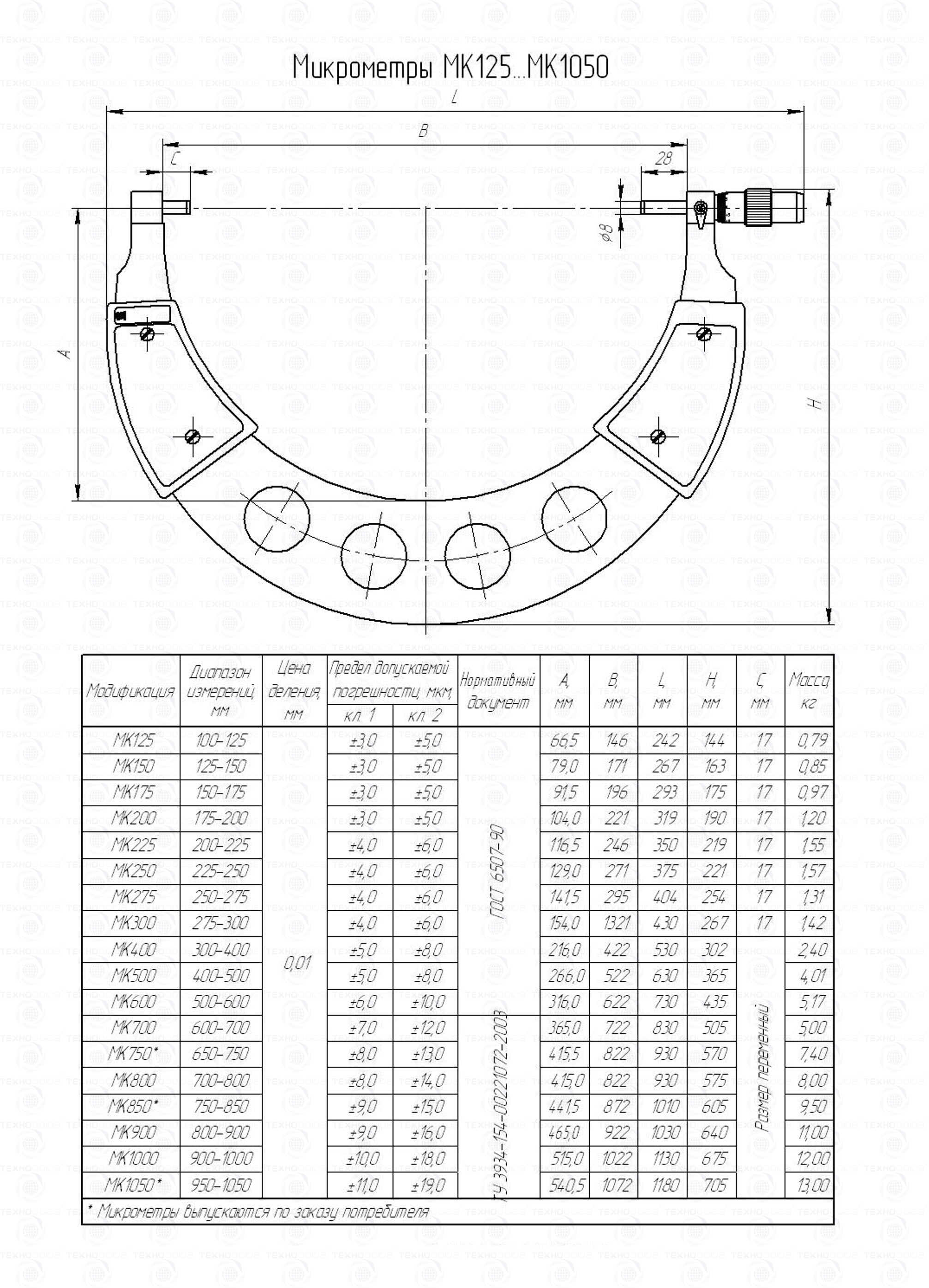 Цена деления 0,01 мм. Диапазон измерения от 250-275 мм. Для измерения наружных размеров изделий. Измерительные поверхности микрометра оснащены твердым сплавом. Микрометры укомплектованы одной установочной мерой. Класса точности 1. ГОСТ 6507-90. Поставляется в двух вариантах с поверкой и без поверки!