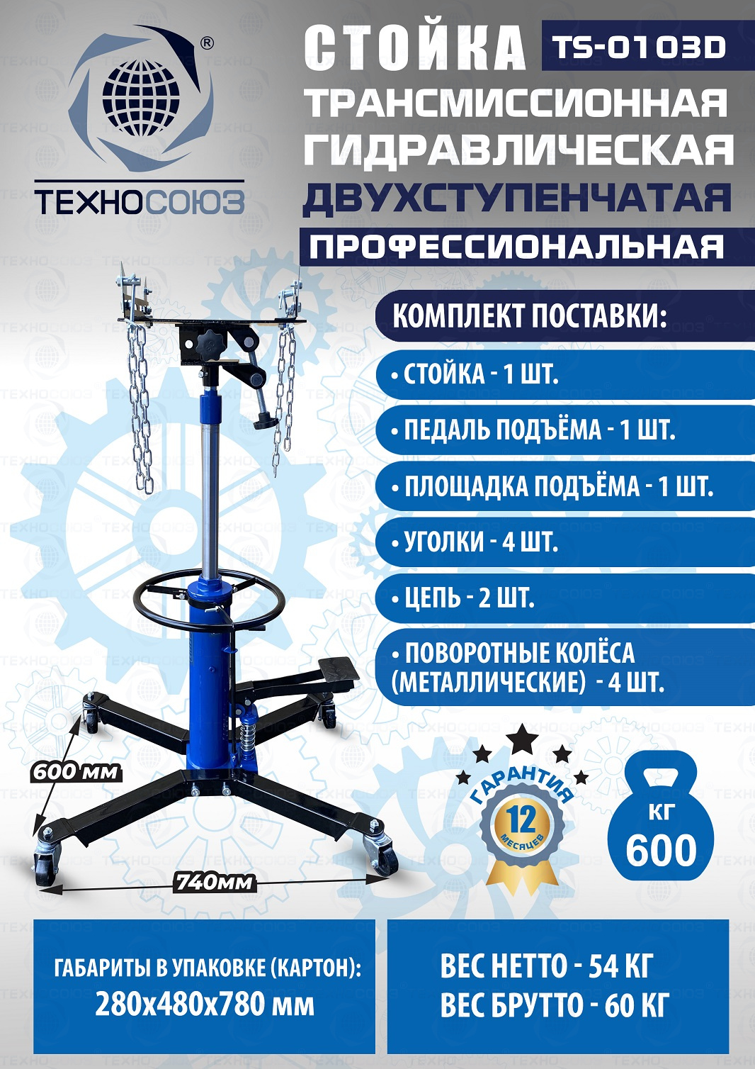 Преимущества TS-0103D стойка трансмиссионная 600 кг :