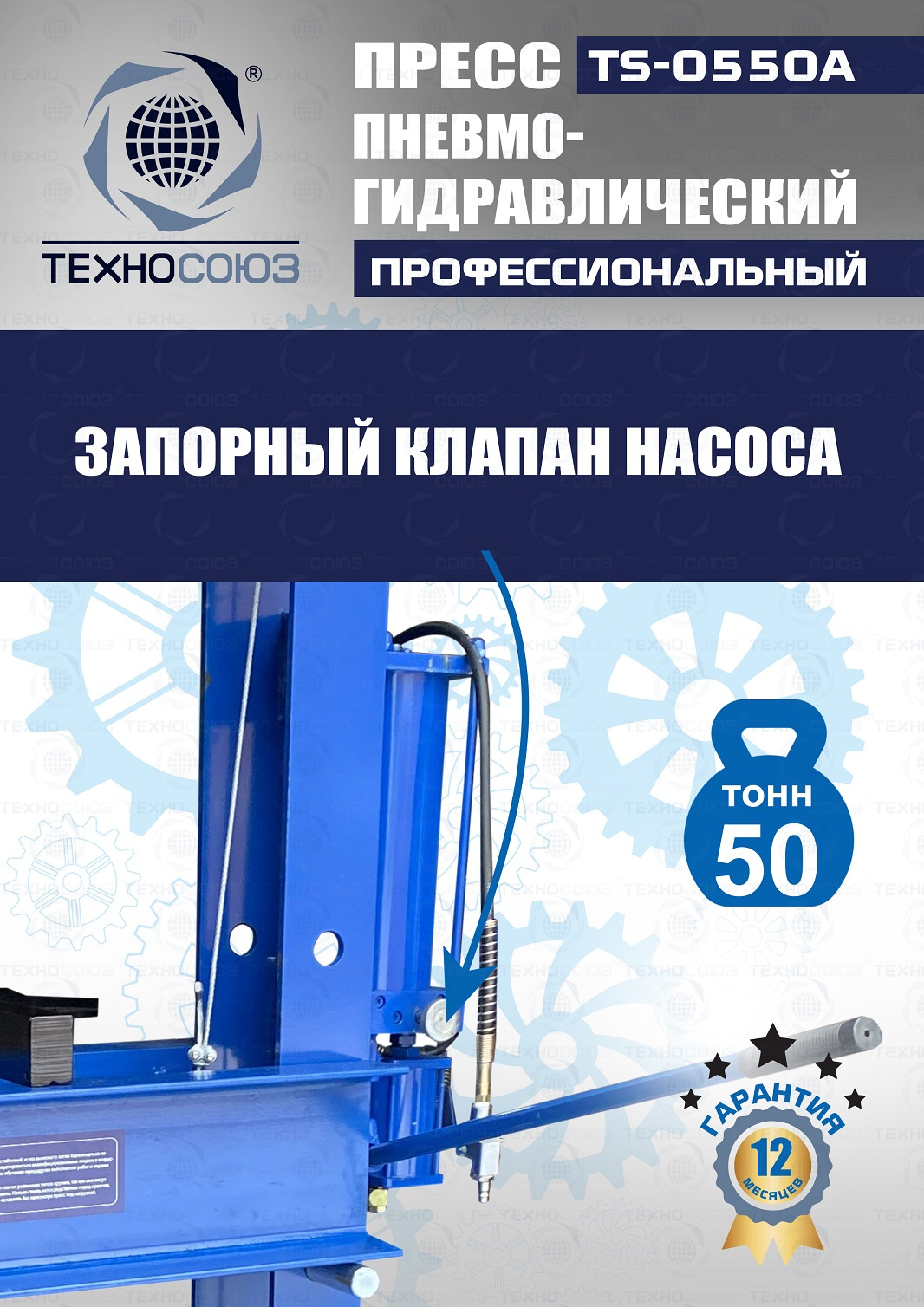 Конструктивные особенности TS-0550A Пресс 50 тонн пневмогидравлический / ручной :