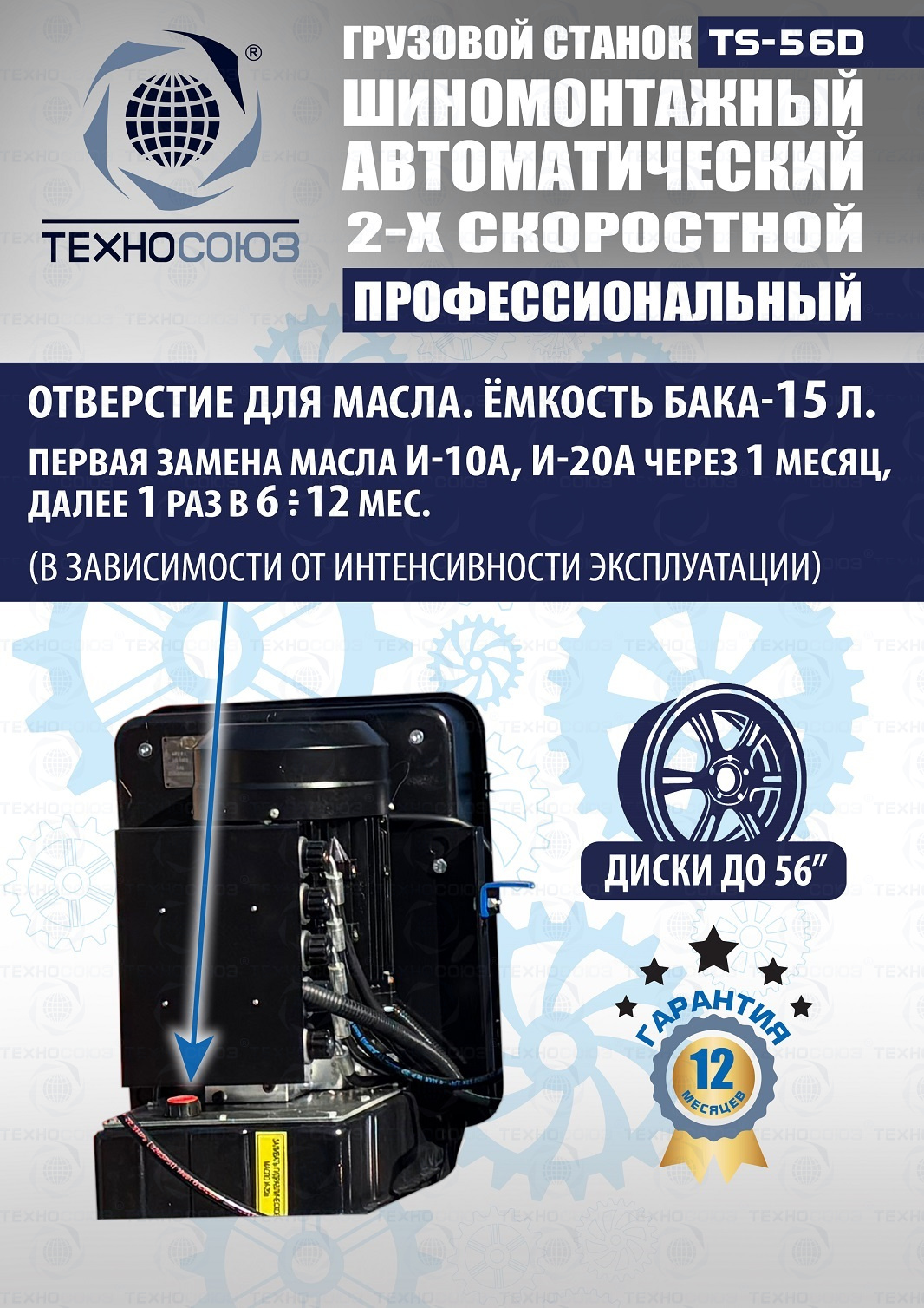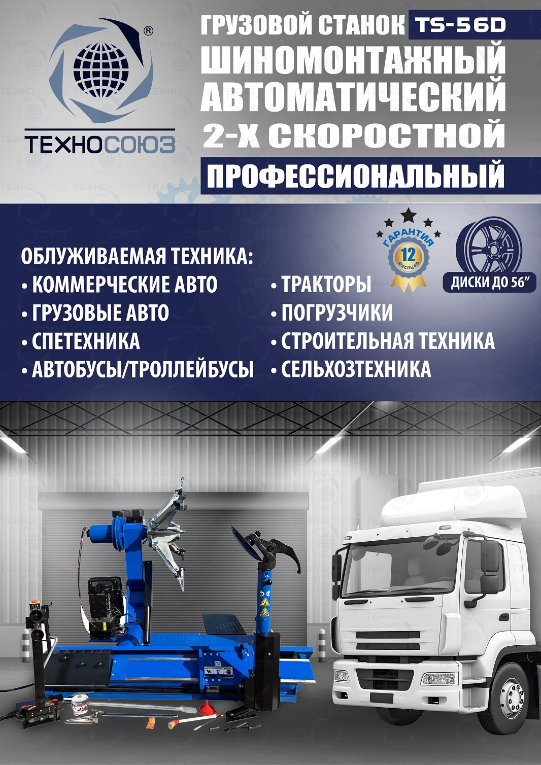 TS-56D Грузовой автоматический двухскоростной шиномонтажный станок 14-56”